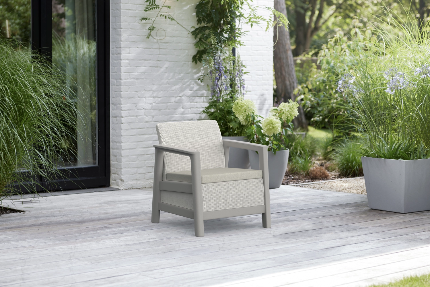 A termék időjárásálló, így kültéri használat során is megőrzi esztétikai megjelenését.