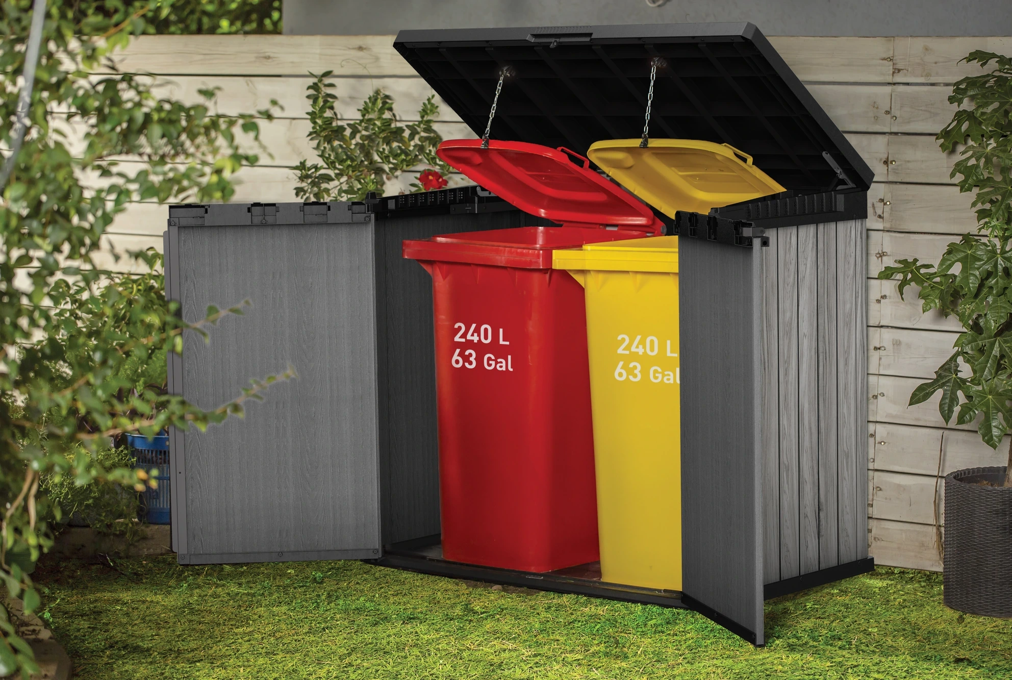 Deco Store-It-Out egy funkcionális kerti tároló, amely megkönnyíti a rend fenntartását a teraszon, erkélyen vagy a kertben. A dupla ajtóknak és a nyitható fedélnek köszönhetően kényelmes hozzáférést biztosít a belső térhez, lehetővé téve többek között kerti kiegészítők, szerszámok, párnák vagy hulladéktárolók tárolását. A tároló zárómechanizmussal van felszerelve a nagyobb biztonság érdekében, valamint polctartókkal, amelyek segítenek jobban megszervezni a belső teret. A Decocoat technológiával készült, amely ötvözi az anyag tartósságát a természetes fa struktúrájú elegáns kivitelezéssel. Az anyag ellenáll az esőnek, nedvességnek és UV-sugárzásnak, így hosszú ideig megőrzi esztétikus megjelenését karbantartás nélkül. Az integrált szellőzőrendszer biztosítja a levegő keringését és segít fenntartani a megfelelő tárolási feltételeket.