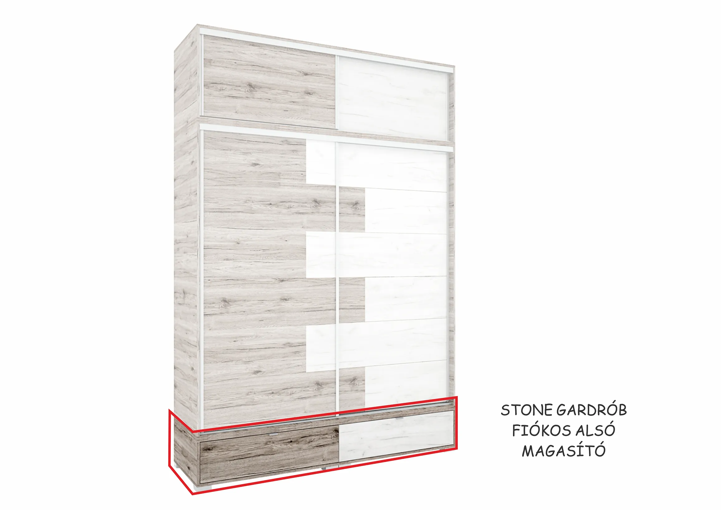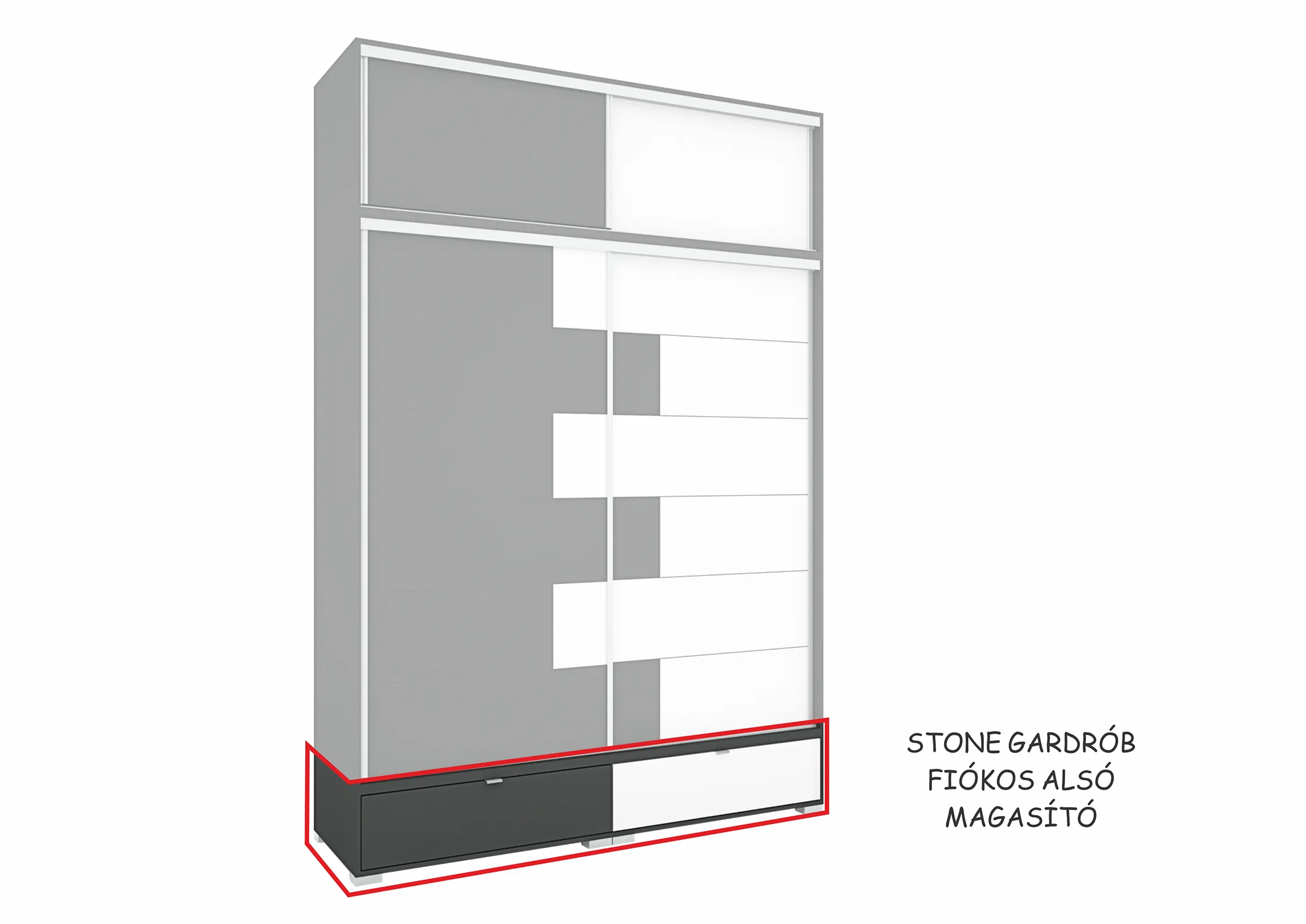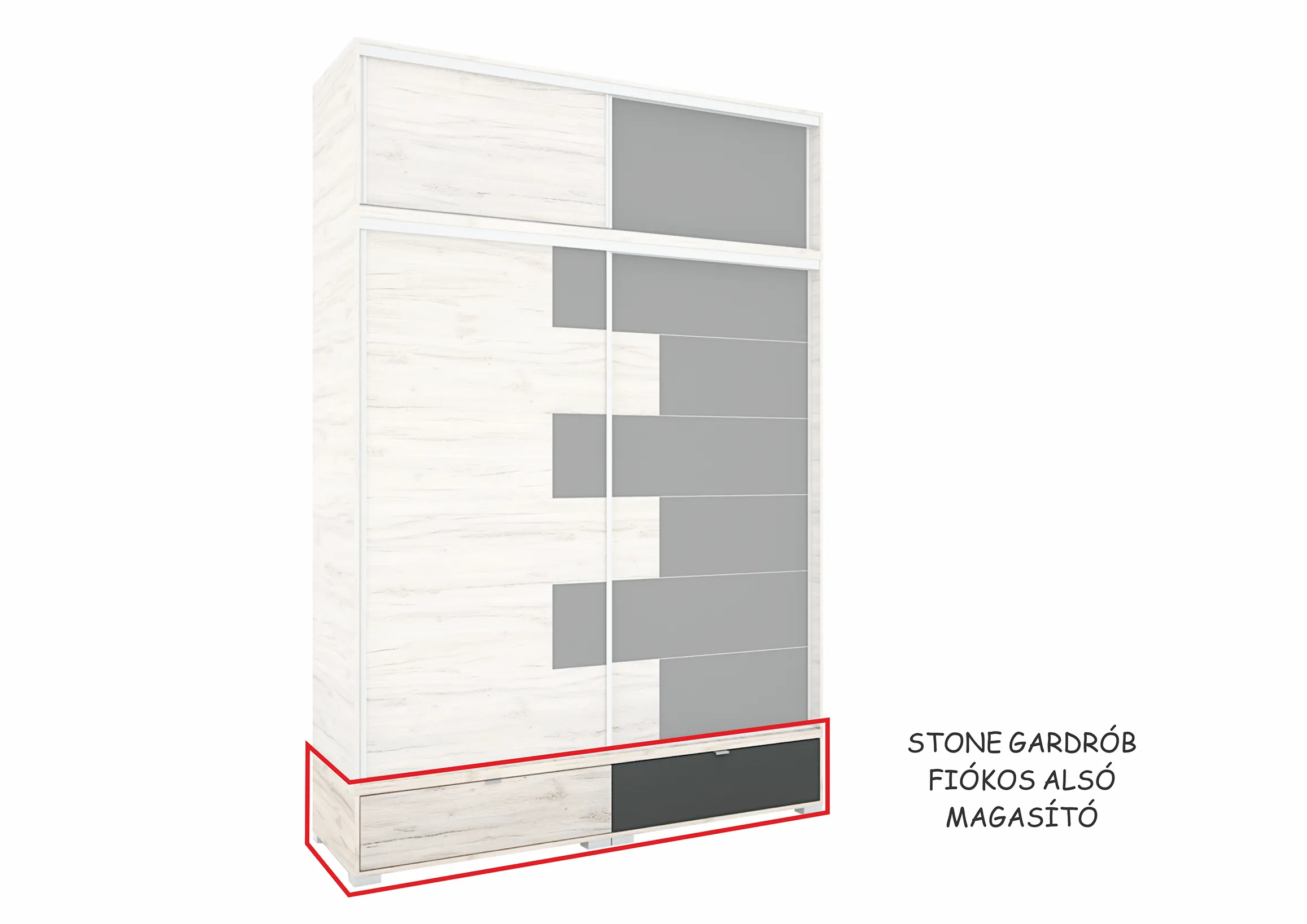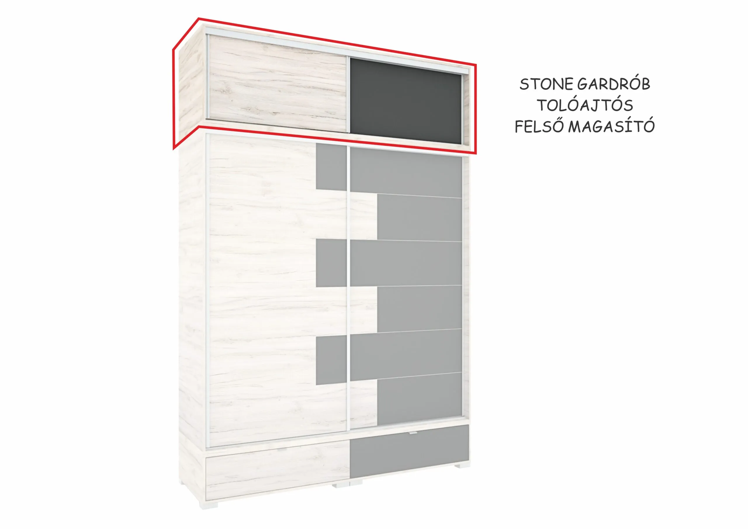 Az új Stone gardrób már elérhető kínálatunkban. A gardrób 200 cm-es méretben kapható. Kiegészíthető magasítókkal, sarokelemmel vagy akár sarokpolccal is. A gardróbhoz rendelhető még plusz fiókkonténer és polc is.